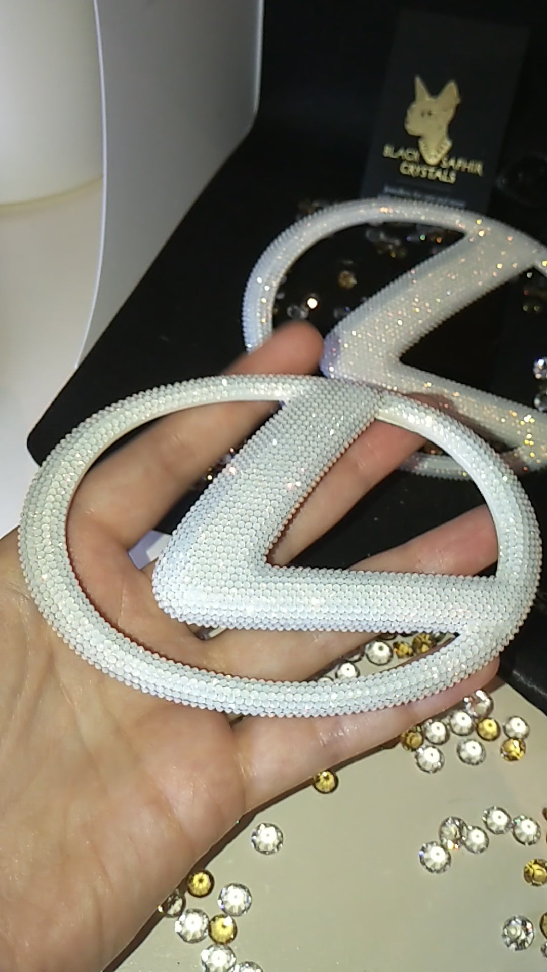 Original Lexus OEM logo emblem rear trunk refined with original Preciosa® crystals. Suitable for all Lexus models, for example: Lexus GS IS ES LS NX RX ISF GSF RCF LBX UX LM LX GX CT SC