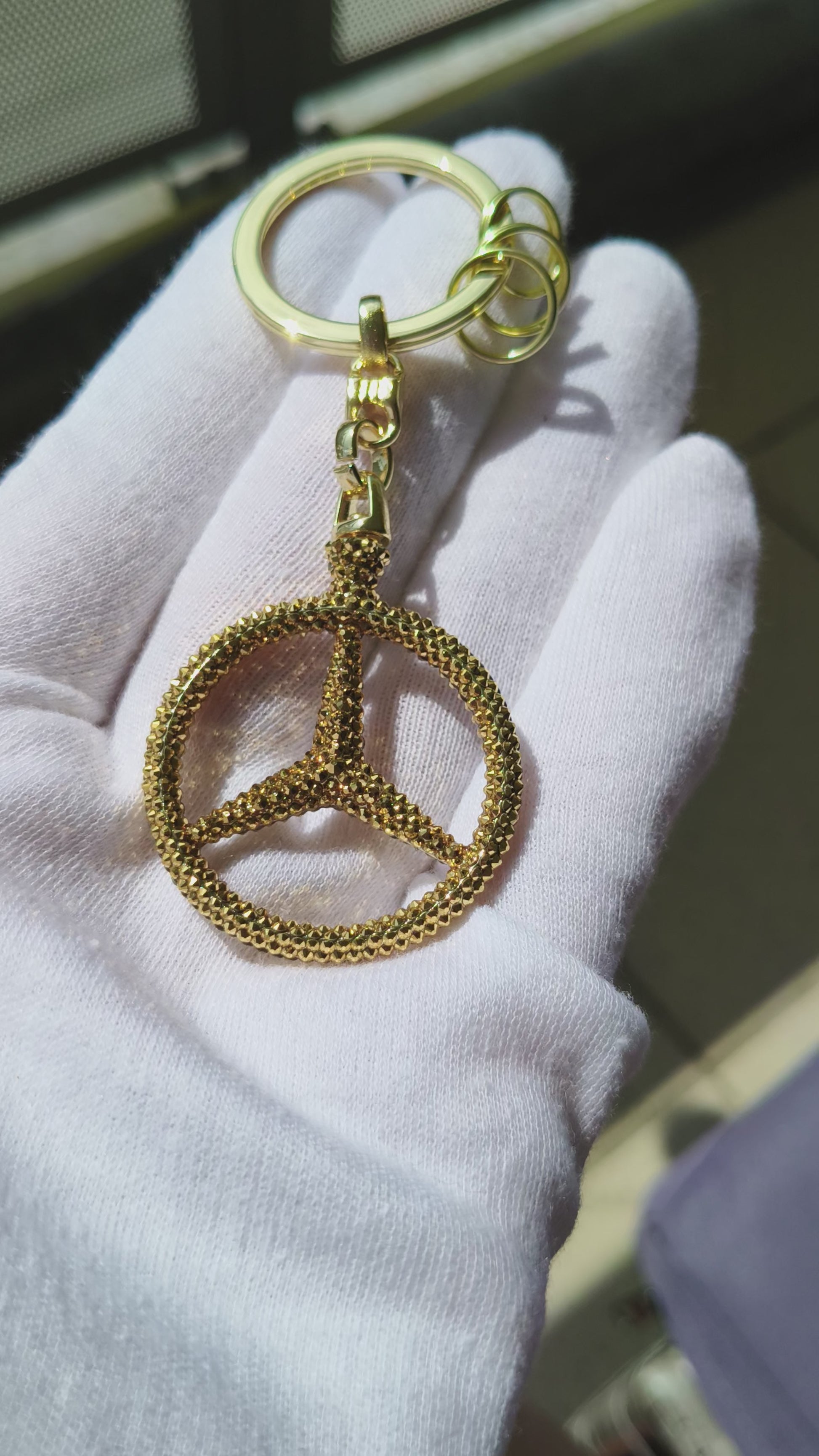 Original Mercedes star keyring Brussels in gold refined with original Preciosa® crystals. Suitable for all Mercedes-Benz models, for example E63 S63 A45 C63 SL SLR SLS SLK ABCE G63 GS SL A Amg EG CLA GLC GLA C GLS